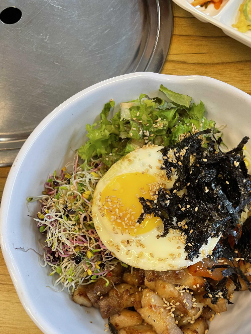 세 번째 사진은 삼겹살이 듬뿍 들어간 초대형 비빔밥