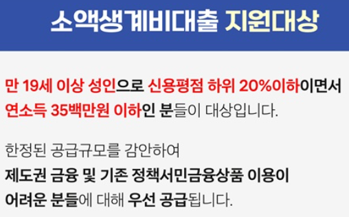 기관 자금 조달에 어려움을 겪는 저신용자 긴급생활자금 대출은 신청 3일 만에 2만5000여 명이 접수돼 약 한 달간 예약이 완료됐다. 목적에 부합하므로 빨리 신청하는 것이 좋을 것 같습니다.
