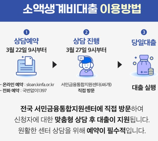 전화예약은 국번없이 1397이며 상담은 3월 27일 오전 9시부터 시작되며 서민금융통합지원센터 46개소를 직접 방문하면 상담이 가능하다. 상담 후 크레딧이 지원되며, 원활한 센터 상담을 위해 예약은 필수입니다. 그래서 시급히 자금 동결이 필요한 분들에게 효과적인 숨쉬는 방법이라고 생각합니다만, 금리만 좀 내려줬으면 하는 바램입니다.