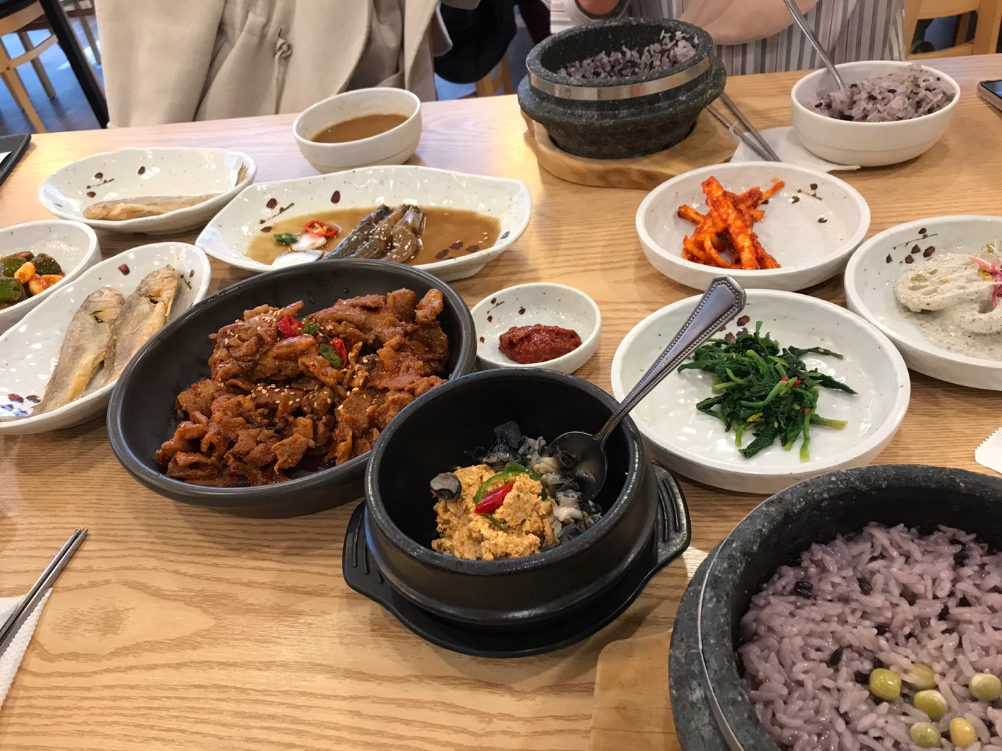밑반찬은 돌솥밥이기 때문에 밥을 공중으로 내린 후,