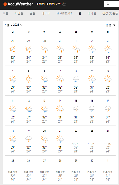 다음으로 6월 호치민 날씨에 대해 알아보려고 합니다.