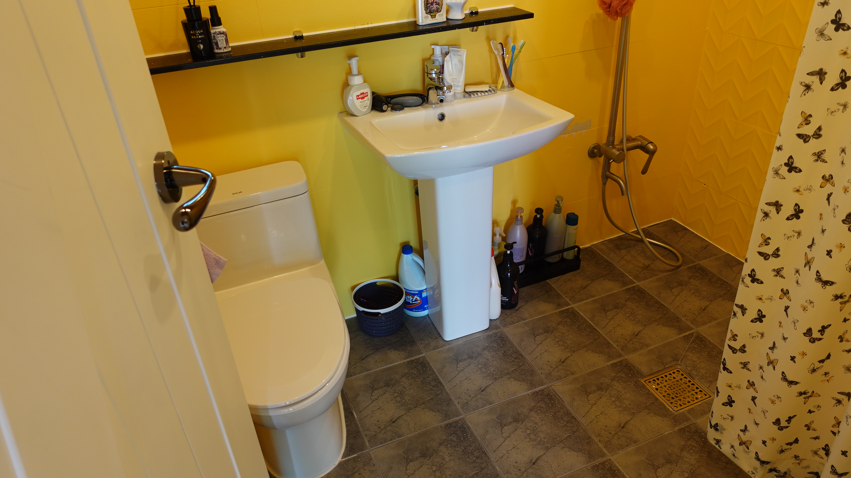 방 3개, 넓은 거실과 주방, 욕실과 화장실 2개, 가스난방