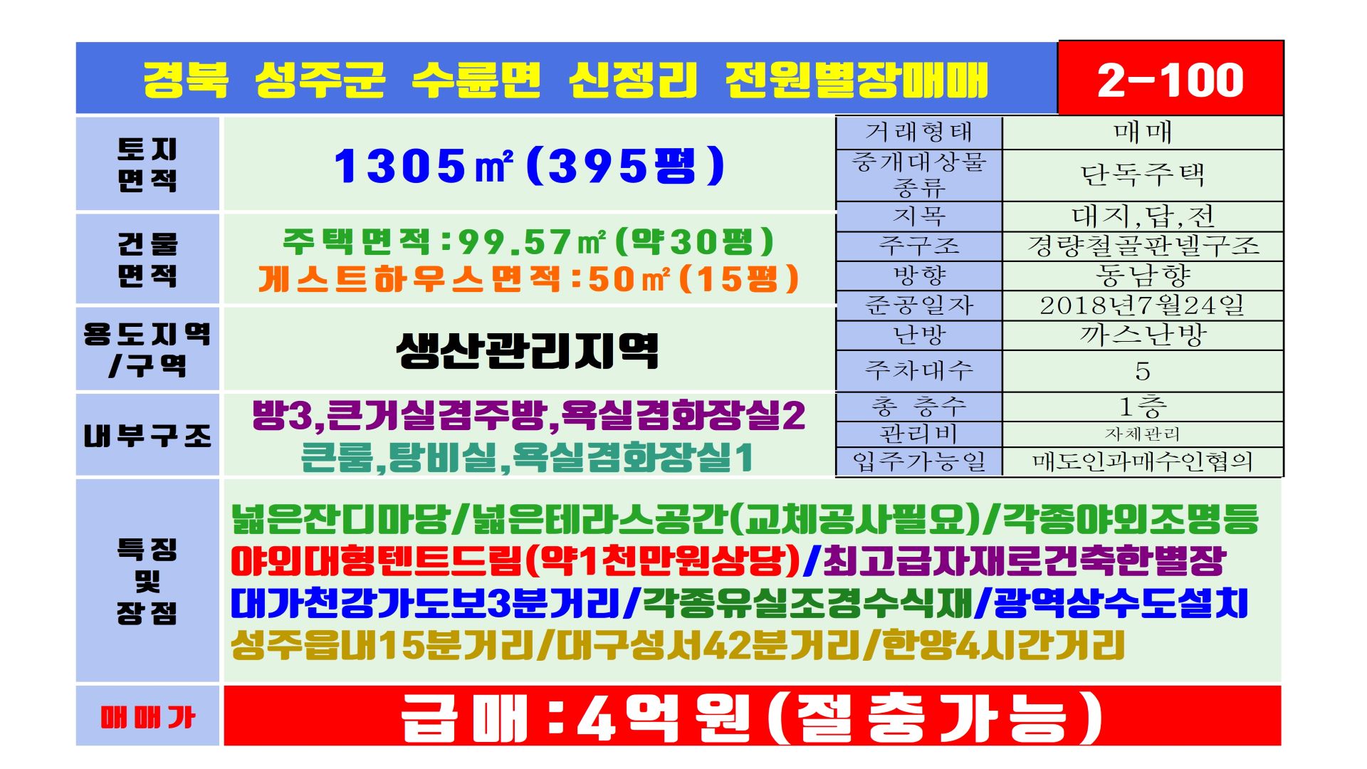 경상북도 성주군 수륜면 신정리 전원별장 매매