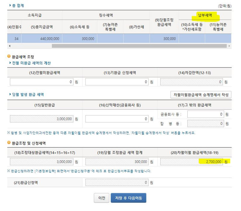 ㅇ 환급 정산 및 세액 확인