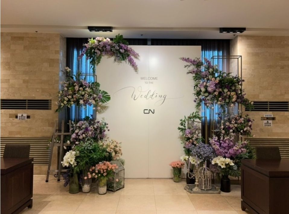 호텔 예식이다 보니 대연회장 꽃장식 비용은 최소 600만원으로 단순하고, 이를 풍성하게 하려면 최대 1000만원까지 생각하면 번거로울 수 있다.