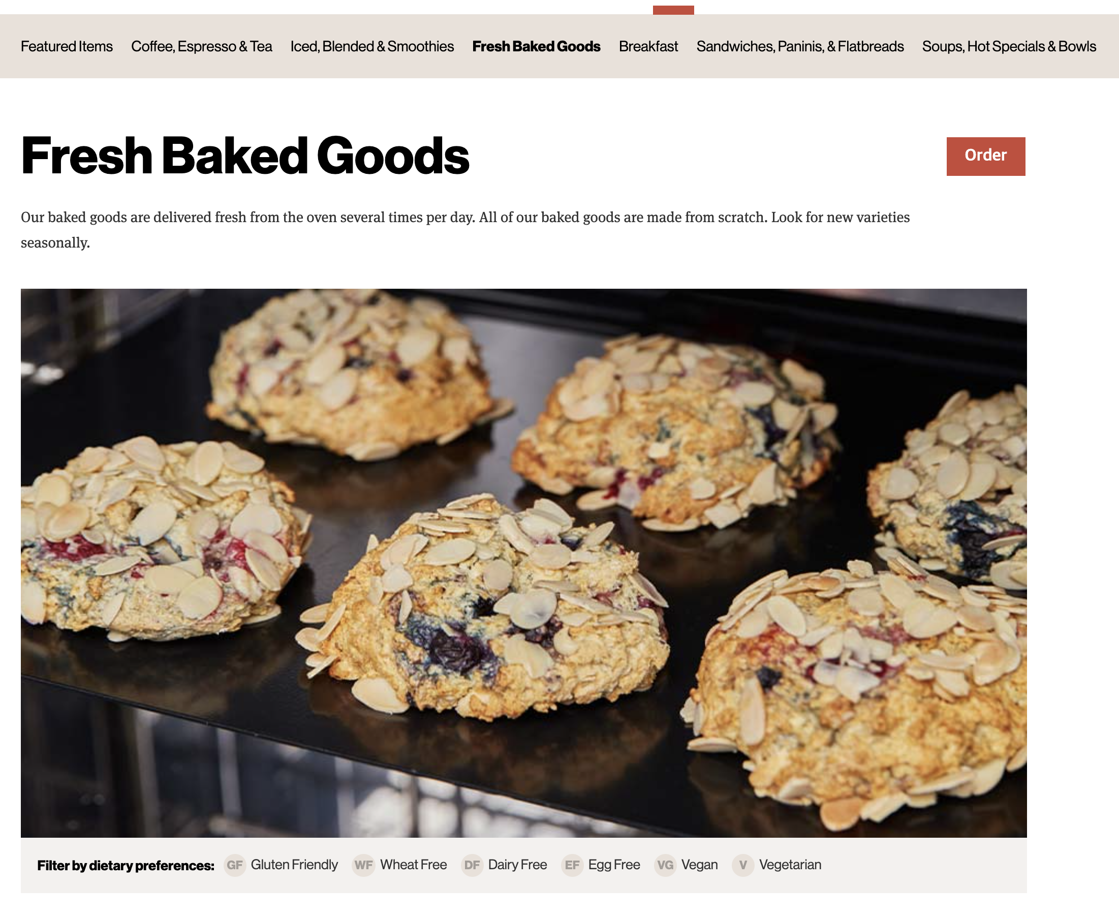 다른 커피숍과 마찬가지로 커피, 차, 스무디, 구운 식품, 수프를 제공합니다.